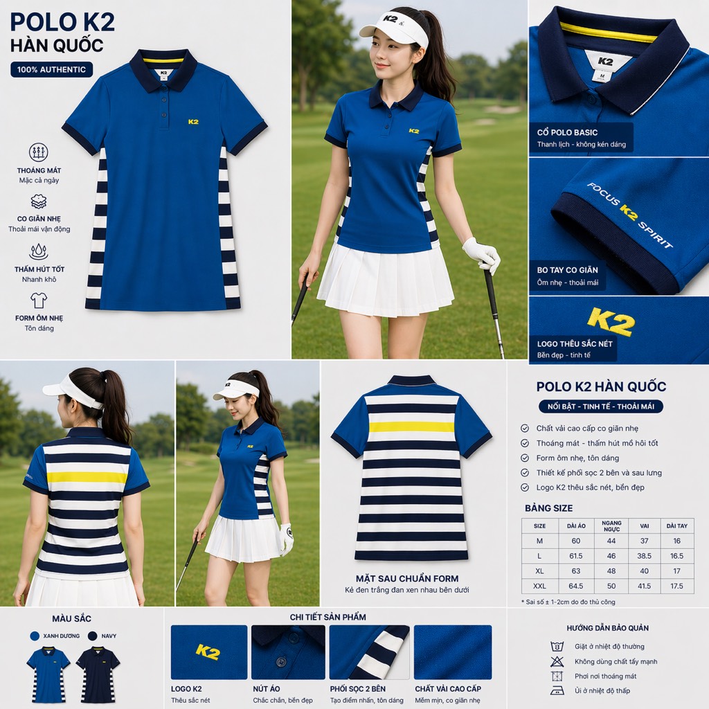 Áo Polo K2 Phối kẻ Nữ K2W12